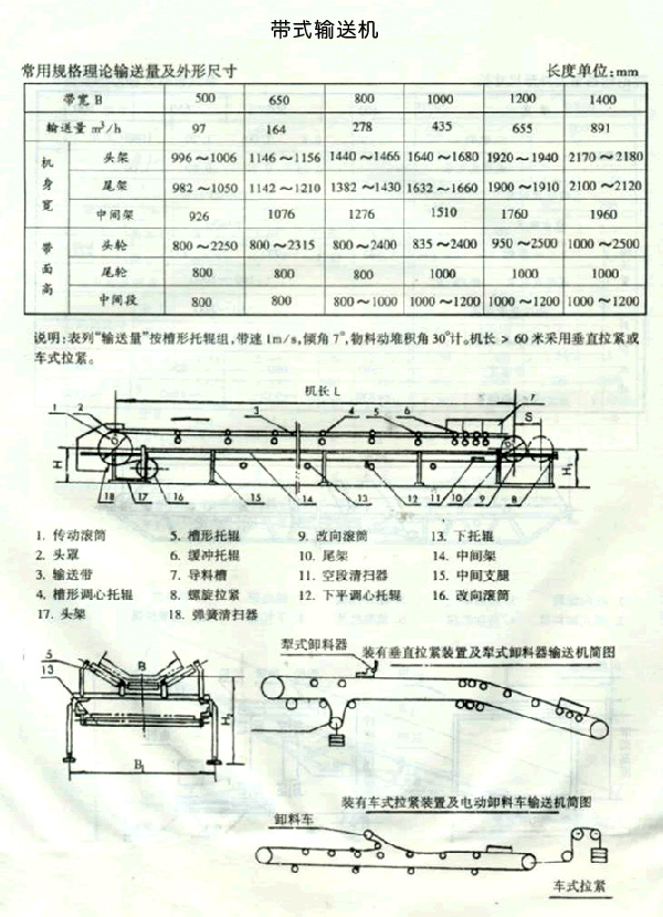 帶式輸送機(jī)的規(guī)格: